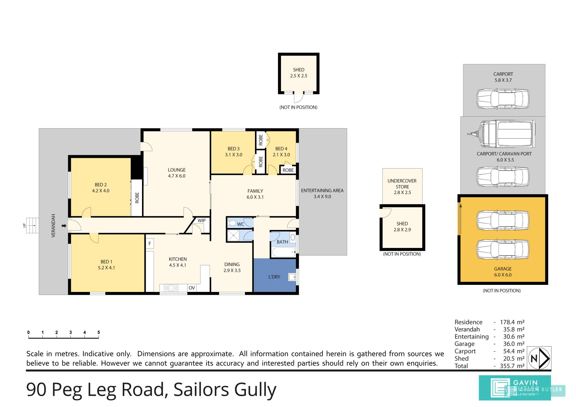 • The home has a large workshop (6m x 5m) with concrete floor and power, there are also two caravan ports, carport, double garage and sundry shedding